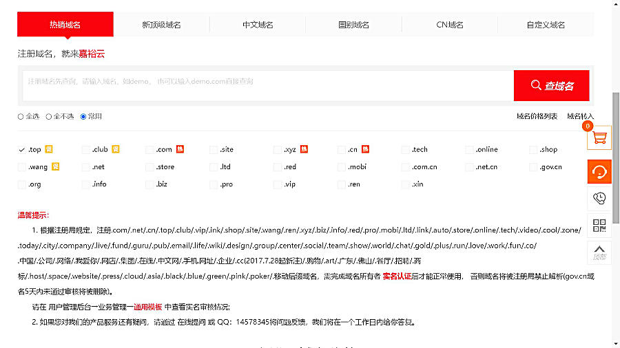 3. 注册结果:跨售组合内.NET域名是否享受优惠以我司系统判断为准,注册结果以系统执行为准。请确保账户余额充足,以免影响注册成功。
